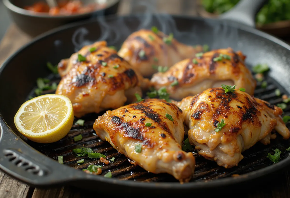 Bí mật của đùi gà nướng hoàn hảo là sự kiên nhẫn và nước ướp. Thịt có xương, có da cần thời gian để nhiệt truyền đến tận xương mà không làm cháy bên ngoài. Nước ướp chanh và thảo mộc không chỉ tạo hương vị mà axit của nó còn nhẹ nhàng làm mềm các thớ thịt, vì vậy kết quả là mọng nước và mềm mại, với lớp da giòn, cay.